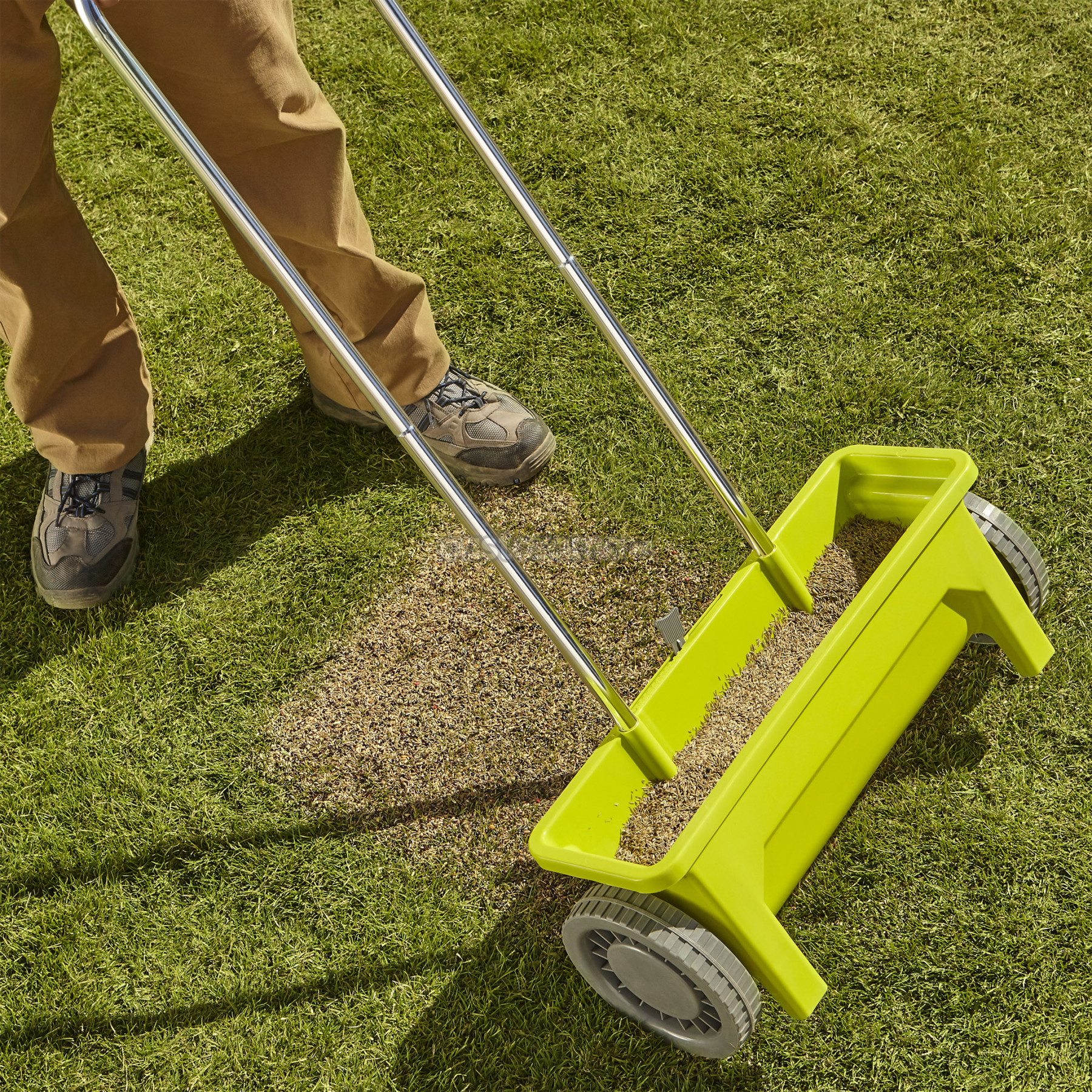 Механическая сеялка, предназначена для посева газонных трав, сидератов, разбрасывания гранулированных удобрений, кормов для животных, для посыпания дорог реагентами, песком, солью в зимний период и т. п. Встроенный распределительный механизм обеспечивает равномерную подачу смеси. Уровень 0-10 регулирует величину отверстия в бункере, что позволяет контролировать объем высыпания смеси. Маневренность и эргономика. Похожие товары