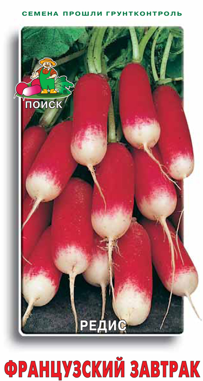Ранний, дружный урожай Период от всходов до сбора корнеплодов 20-25 дней. Корнеплоды удлиненно-цилиндрические, ярко-красные, с белым кончиком. Масса 20-25 г. Мякоть белая, нежная, очень сочная, вкус слабоострый. Рекомендуется для выращивания в открытом грунте, весенних теплицах, пленочных укрытиях. Сорт дружно формирует урожай, устойчив к цветушности. Похожие товары