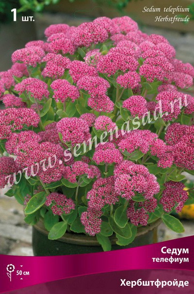 Седумы – однолетники, многолетники, полукустарники, имеющие прямостоячие или стелющиеся побеги. Это суккуленты с мясистыми сочными листьями. Цветки мелкие звездчатые, чаще желтые, собранные обычно в щитковидные соцветия. Декоративны в течение всего периода вегетации. Месторасположение: светолюбивы, мирятся лишь с небольшим затенением, окраска листьев многих видов на солнце более яркая и сочная, некоторые даже приобретают характерный румянец или загар. В условиях недостаточной освещенности они перестают цвести и сильно вытягиваются, теряя свой вид так, что их невозможно узнать. Почва: все седумы неприхотливы, хорошо развиваются на любой окультуренной почве с внесением небольшого количества перегноя или компостной земли. Размножение: семенами, делением куста и черенками. Цветение: в июне-сентябре. Использование: пригодны при создании ковровых композиций, рабаток, бордюров и при озеленении откосов. Высокорослые виды с успехом используют в миксбордерах и группах, отдельные виды — на срезку. Хорошо смотрятся на каменистых и скальных участках. Хербштфройде – высота растения 50см, темно-розовый. Похожие товары