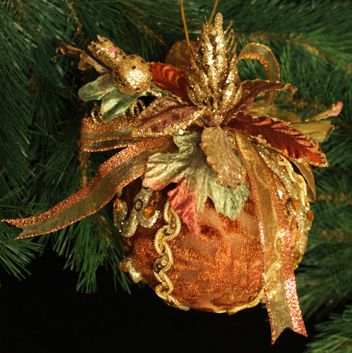 Шар медно-золотой бархат с декором из листьев и цветов TLN1167