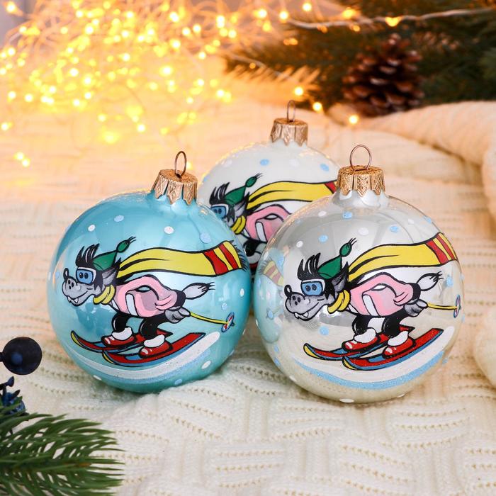 Шар Волк на лыжах 8,5см микс КУ-85-18531