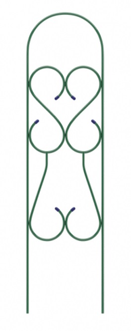 Шпалера "Узорная" - это сочетание удобства и функциональности изделия для придания растениям формы и устойчивости, используется как опора для вьющихся растений. Может служить элементом красивого ограждения и декоративного оформления приусадебного участка. Садовый участок всегда должен привлекать внимание роскошными цветами и растениями, которые поддерживаются оригинальными опорами. Размер: высота 1,3 м, ширина 0,35м. Материал: металлическая труба, диаметр 10 мм в покрытии-краска порошковая. Похожие товары