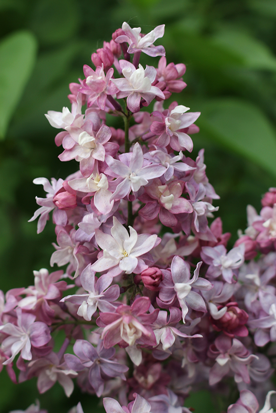 Бутоны зеленые с лиловым оттенком. Цветки крупные (до 3,7 см), густомахровые, асимметричные, с закрытым центром. Лепестки редкой темно-лиловой, позже лиловато-розовой неоднородной дымчатой окраски, тыльная сторона с жемчужным оттенком. В тени и по мере отцветания лепестки становятся голубыми. Кисти крупные (22 см), плотные, красивой пирамидальной формы. Позднего срока цветения. Похожие товары