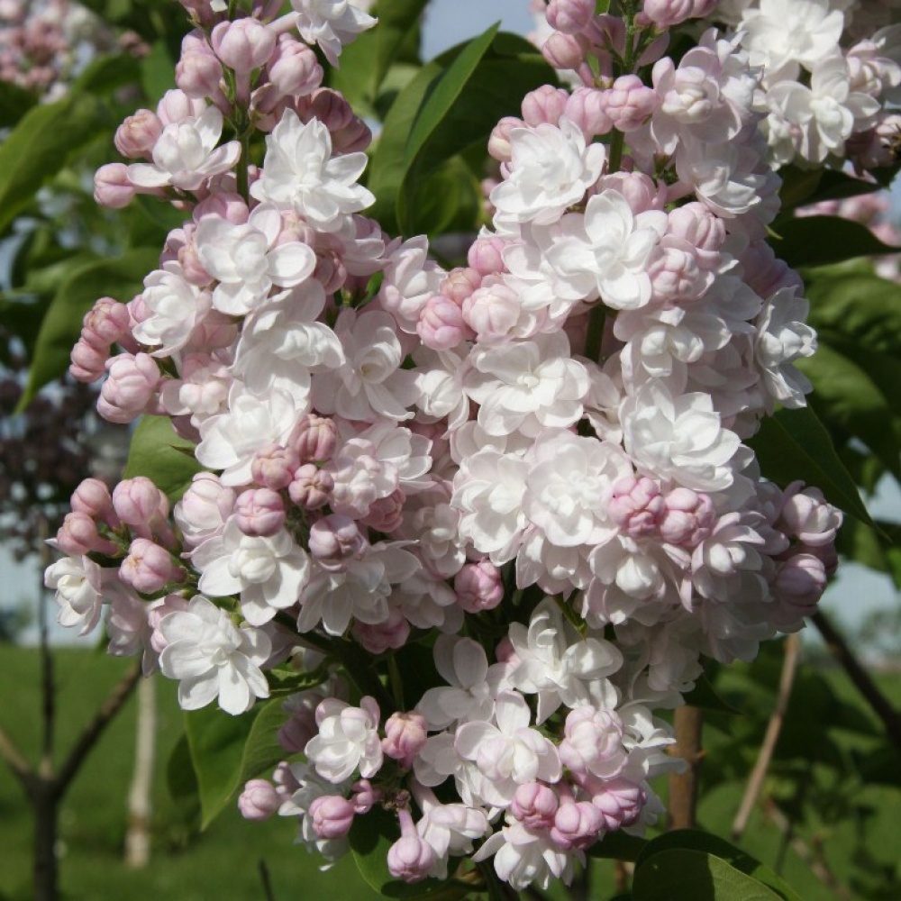 Кусты средней высоты, раскидистые, цветение ежегодное, обильное, продолжительное. Цветет в средние сроки. Сорт редкой красоты. Используют для срезки и в озеленении. Бутоны крупные, шаровидные, розовато-лиловые с атласным блеском. Цветки симметричные, совершенной формы, состоят из 2-3 венчиков, в полуроспуске похожи на прелестные розочки удивительно красивого цвета. Розовато-белые с перламутровым переливом, они постепенно становятся жемчужно-белыми с легким, едва проступающим румянцем. Соцветия крупные, вертикально расположенные. Похожие товары