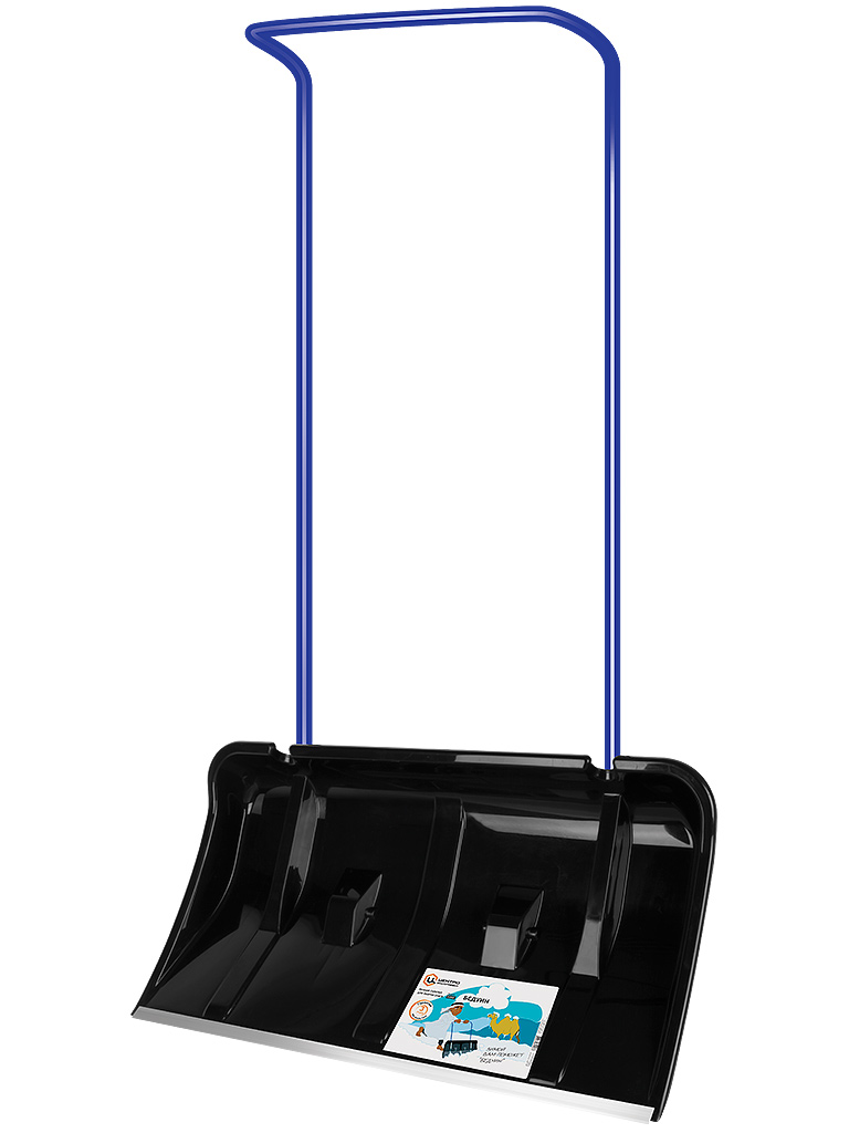 Высокопрочный морозоустойчивый пластик (до -50°С). 2 колеса на тыльной стороне ковша. П-образная металлическая рукоятка. Алюминиевая окантовка внешней рабочей кромки. Похожие товары