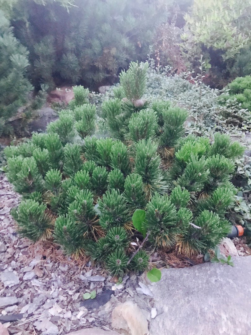 Сосна горная `Гном`. Кустарниковая форма, до 2 м высотой и шириной, с многочисленными побегами, из каждого прошлогоднего побега нередко появляются по 3 - 5 новых. Почки продолговатые, смолистые. Крона шаровидная. Растет медленно. Не нуждается в обрезке. Местоположение: Солнце. К почве нетребовательна, лучше растет на свежих, хорошо дренированных суглинках и супесях. Выносит засоление и застой влаги. Похожие товары