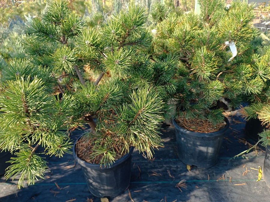 Сосна горная `Гном`. Кустарниковая форма, до 2 м высотой и шириной, с многочисленными побегами, из каждого прошлогоднего побега нередко появляются по 3 - 5 новых. Почки продолговатые, смолистые. Крона шаровидная. Растет медленно. Не нуждается в обрезке. Местоположение: Солнце. К почве нетребовательна, лучше растет на свежих, хорошо дренированных суглинках и супесях. Выносит засоление и застой влаги. Похожие товары