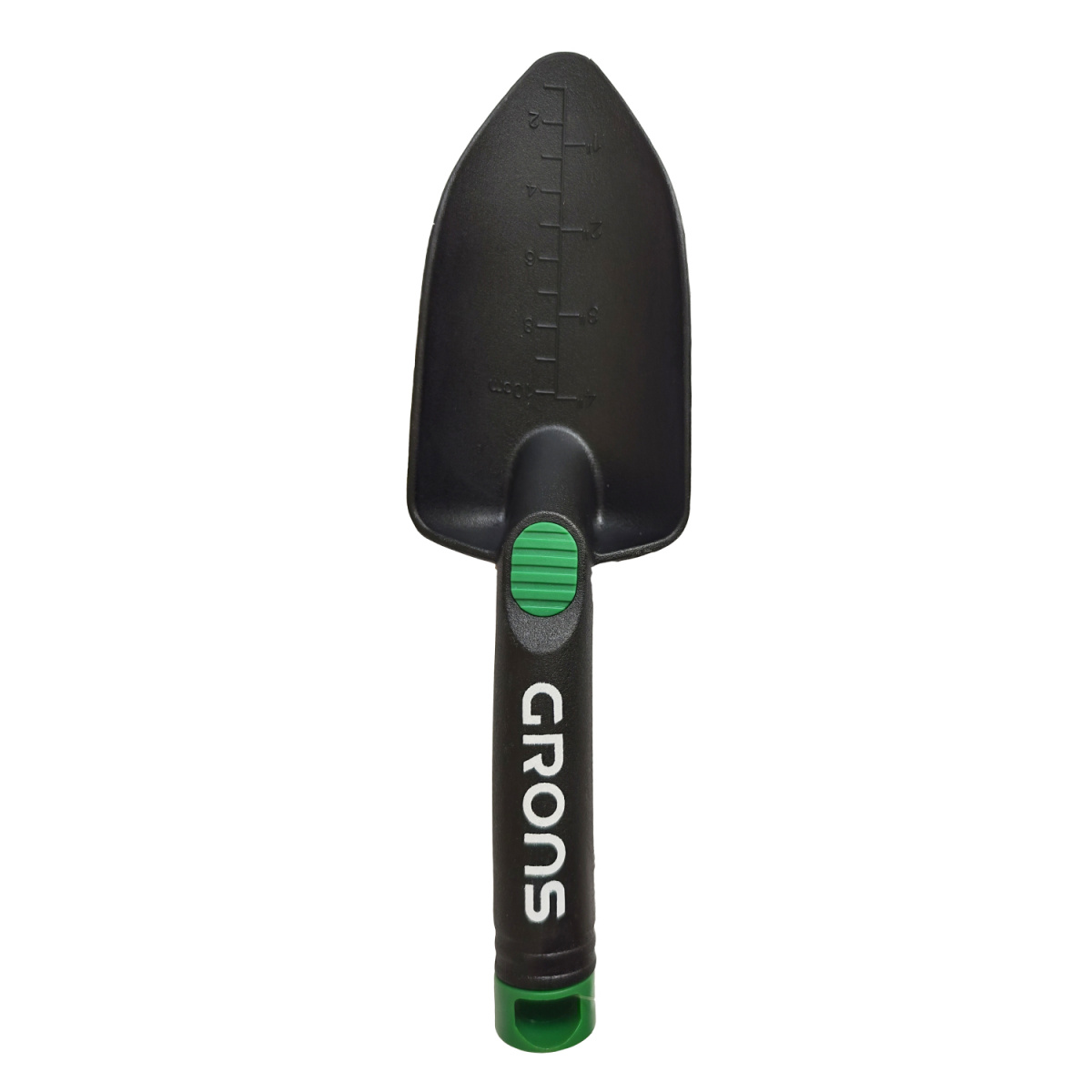 Применяется для проведения работ на небольших грядках. Инструмент изготовлен из стекловолокна Fiberglass - легкого и прочного материала, устойчивого к воздействию ядохимикатов, удобрений, ультрафиолета и в то же время не уступает по прочности металлу. Специальная вставка из термопластичной резины для пальца обеспечивает дополнительный комфорт в работе, снижая нагрузку на кисть руки. Удобная измерительная шкала на лопатке позволяет выкапывать ямки необходимой глубины для посадки растений. Похожие товары