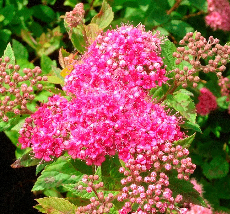 Компактный кустарник с округлой кроной, высотой до 0,8 м и шириной до 0,6 м. Цветение обильное и продолжительное с июля по сентябрь, цветки карминно-розового цвета, мелкие собранны в щитковидные соцветия на концах побегов. После цветения отцветшие соцветия обрезают. Листья среднего размера продолговато-яйцевидные, при распускании красноватого оттенка, летом тёмно-зелёные. Осенью окрашиваются в оранжево-красные тона. Местоположение: солнце, полутень. Почва: не требовательна, предпочитает влажные почвы. Использование: бордюры, групповые посадки. Похожие товары