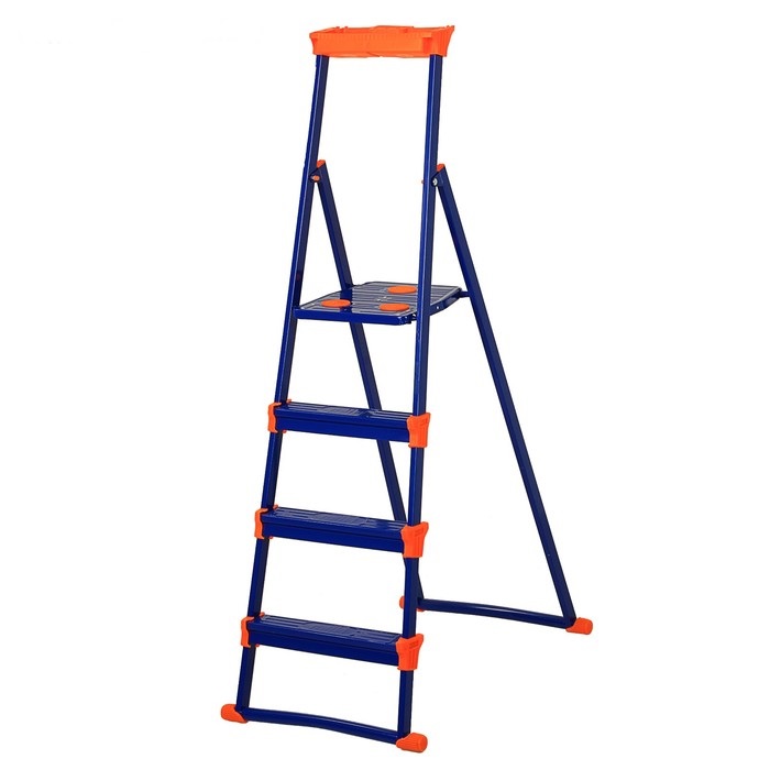 Стремянка металлическая 4 ступени, для рыхлых поверхностей, высота до рабочей площадки 860мм, ширина ступени 65мм, многофункциональный лоток для инструментов, максимальная нагрузка 150кг, вес изделия-5,7кг. Похожие товары
