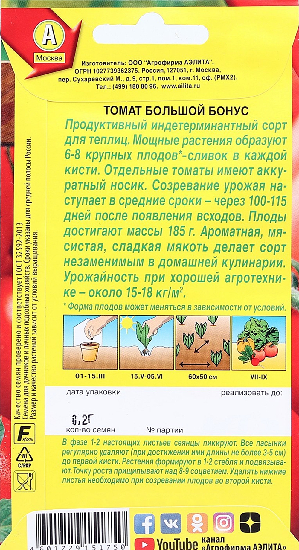 Продуктивный индетерминантный сорт для теплиц. Мощные растения образуют 6-8 крупных плодов*– сливок в каждой кисти. Отдельные томаты имеют аккуратный носик. Созревание урожая наступает в средние сроки – через 100-115 дней после появления всходов. Плоды достигают массы 185 г. Ароматная, мясистая, сладкая мякоть делает сорт незаменимым в домашней кулинарии. Урожайность при хорошей агротехнике – около 15-18 кг/м2. * Форма плодов может меняться в зависимости от условий. Похожие товары