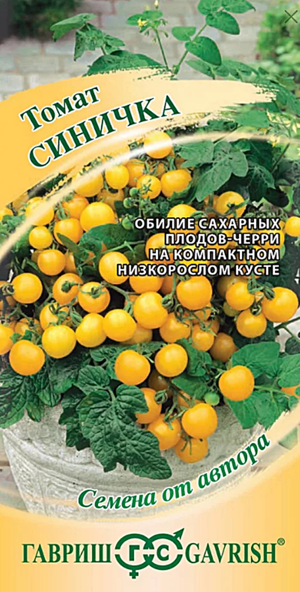 Очень ранний (от всходов до плодоношения 85–95 дней) сорт для выращивания в горшечной культуре дома и уплотненных посадок в открытом грунте. Растение детерминантное, штамбовое, с простыми кистями, высотой до 40см. Плоды вишневидные, желтые, массой 15–20г, с медовым вкусом и сильным томатным ароматом. Прекрасное угощенье, как в свежем, так и в маринованном виде. Миниатюрный растение, усыпано плодами — замечательное украшение для кухонного интерьера, особенно в сочетании с красноплодными вишневидными сортами (Томат Снегирек). При выращивании в комнатных условиях семена на рассаду высевают в начале февраля, на открытом балконе и в открытом грунте — в первой половине марта. Пикировку производят в фазе первого настоящего листа. Высадку рассады в открытый грунт — в середине мая – начале июня. Схема посадки в открытом грунте: 30х30см. Семена сохраняют всхожесть на протяжении 10 лет при оптимальных условиях хранения. Рекомендуется увеличить норму высева по истечении срока годности. Похожие товары
