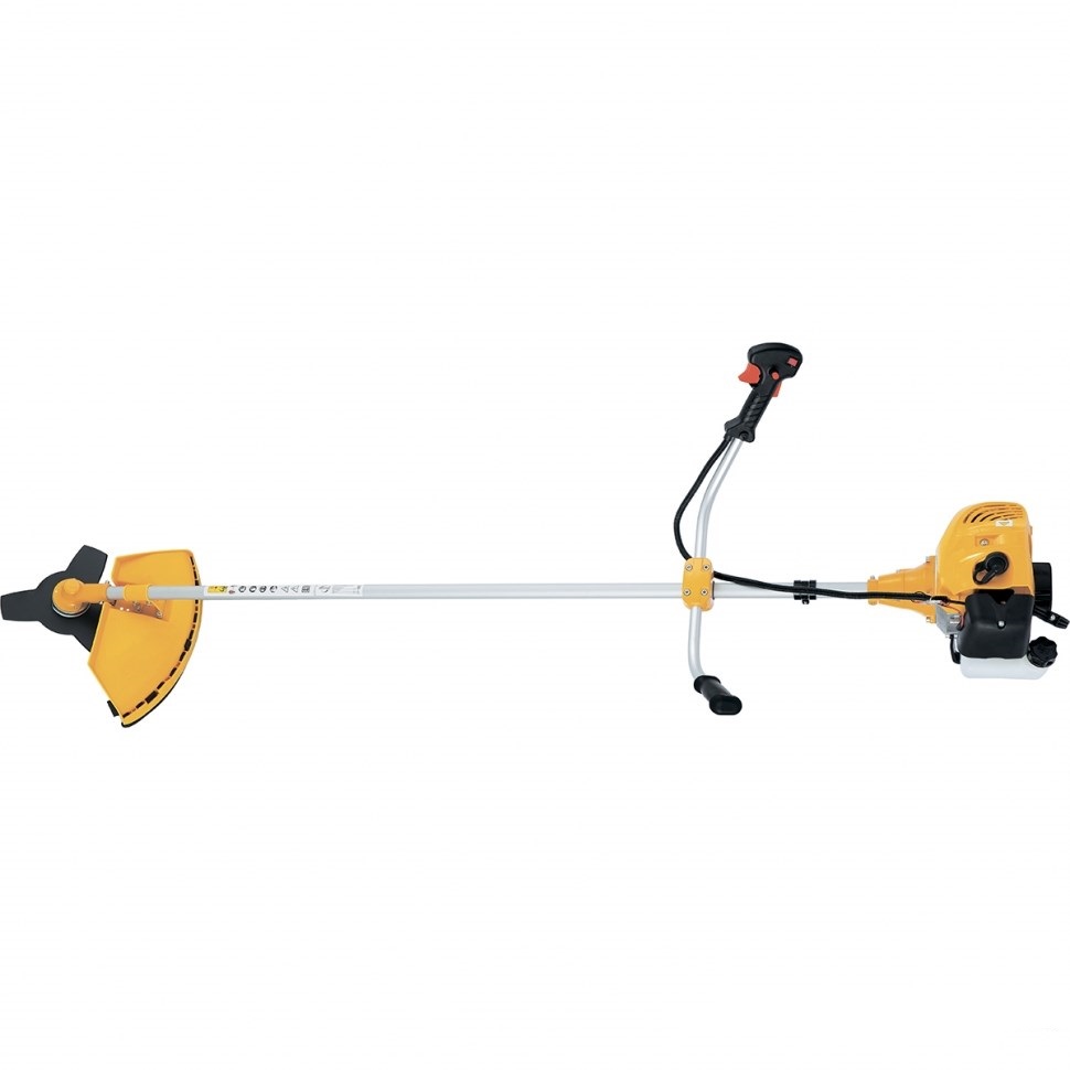 Применяется для покоса травы и молодого кустарника. Идеален для труднодоступных мест: вдоль стен строений, кромок дорожек и вокруг деревьев. Триммер оснащен режущими элементами для разного растительного покрова, которые быстро сменяются, это трёхлопастной диск из стали, который предназначен для работы с молодым кустарником и жесткой травой, и режущая полуавтоматическая шпуля с леской для покоса обычной травы. Двигатель двухтактный объемом 32,6 см3, мощностью 1 кВт потребляет менее 0,5 л топлива в час. Благодаря малому весу в 8,6 кг, велосипедной рукояти, удобному наплечному ремню и высокой частоте вращений режущих элементов триммер обрабатывает большие участки за короткое время. Похожие товары