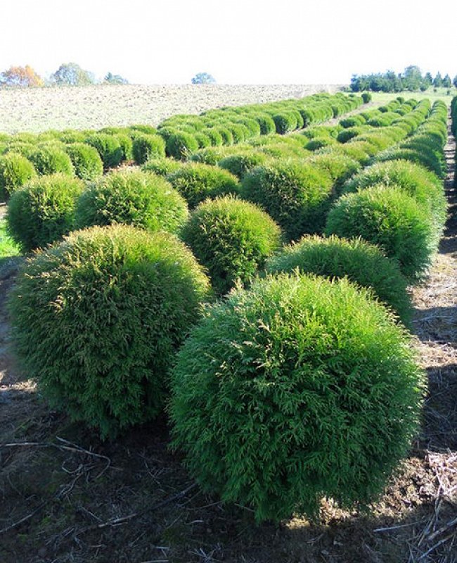 Туя западная Глобоза (Thuja occidentalis Globosa) - карликовая форма туи западной, достигает 1,5 м высотой и около 1,5 м шириной. Форма кроны округлая. Растет быстро. В 10 лет более 1 м в ширину. Хвоя чешуевидная, светло-зеленая весной, зеленая летом и серо-зеленая или коричневатая зимой. Зимостойка. Растет медленно. Плоды – светло-коричневые шишки. Лучшего развития достигает на солнечных или полутенистых участках. Почвы предпочитает плодородные суглинки. Чувствительна к засухе. На зиму рекомендовано связать крону. Похожие товары