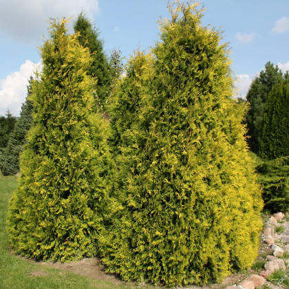 Крона в виде ровного конуса, ветки растут плотно, прямо вверх, немного скручиваясь и образуя подобие «ракушки». Размеры молодого деревца увеличиваются очень медленно. В течение года прирост обычно бывает около пяти сантиметров (как по ширине, так и по высоте). В возрасте десяти лет дорастает до 2–2,5 метров при объёме кроны 1,5 м. В дальнейшем может ещё немного вытянуться, но высота взрослого экземпляра не может быть больше 4,5–5 метров. Интересной особенностью сорта является расцветка хвои, которая меняется в зависимости от времени года и места расположения саженца. Ранней весной молодые «иголочки» желтовато-золотистые. Летом на освещённом участке цвет становится более насыщенным, а в тени, наоборот, приобретает зеленоватые оттенки. Поздней осенью и зимой хвоя туи этого сорта бывает благородной бронзовой окраски. Кора на стволе – серого или красноватого цвета, немного отслаивается. Растение теневыносливо, но гораздо декоративнее выглядит на открытом солнечном или полузатенённом месте. Характеризуется высокой зимостойкостью, выдерживает морозы до – 42 градусов. Хорошо противостоит ветрам. Опасность представляют солнечные ожоги, особенно в зимне-весенний период, а также мокрый и тающий снег, способный поломать нежные веточки. Похожие товары