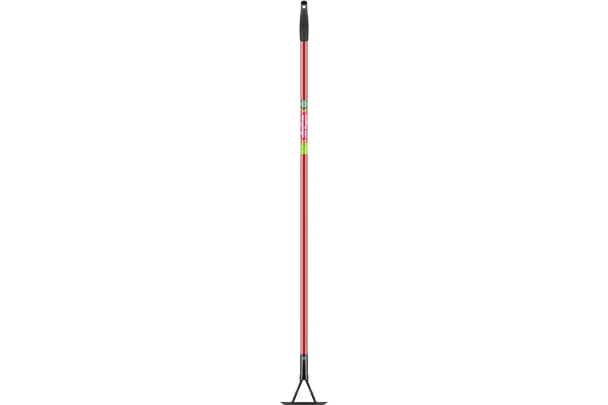 Трапециевидное лезвие изготовлено из холоднокатаной стали. Металлический черенок окрашен порошковой краской, что обеспечивает защиту от коррозии. Полипропиленовая рукоятка с отверстием для подвеса позволяет удобно хранить инструмент в подвешенном виде. Похожие товары