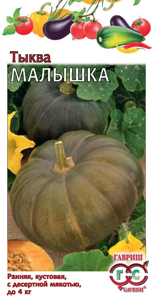 Скороспелый (80-90 дней от полных всходов до уборки) сорт с высоким и ранним образованием женских цветков. Уже на 35-40 день после всходов образует завязи. Растение кустового типа, компактное. Плоды сплюснутые, темно-серые с коричневым оттенком, массой 2-3 кг. Мякоть хрустящая, средней плотности и сочности, оранжевая, сладкая, сахаристая. Вкусовые качества высокие. Отличается высоким содержанием каротина и сахаров. Выращивается как рассадным способом, так и прямым посевом в грунт. Посев на рассаду в апреле, высадка в грунт в мае – июне. Посев непосредственно в грунт в конце мая – июне. Хорошо отзывается на внесение органических удобрений. Урожайность 3,2 кг/м2. Похожие товары