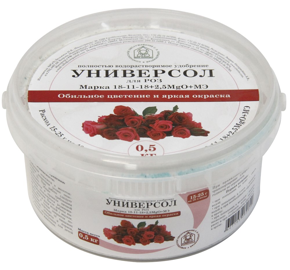 Универсол для роз - полностью водорастворимое минеральное удобрение для корневых и некорневых подкормок роз. СОСТАВ N 18% P 11% K 18% MgO Похожие товары