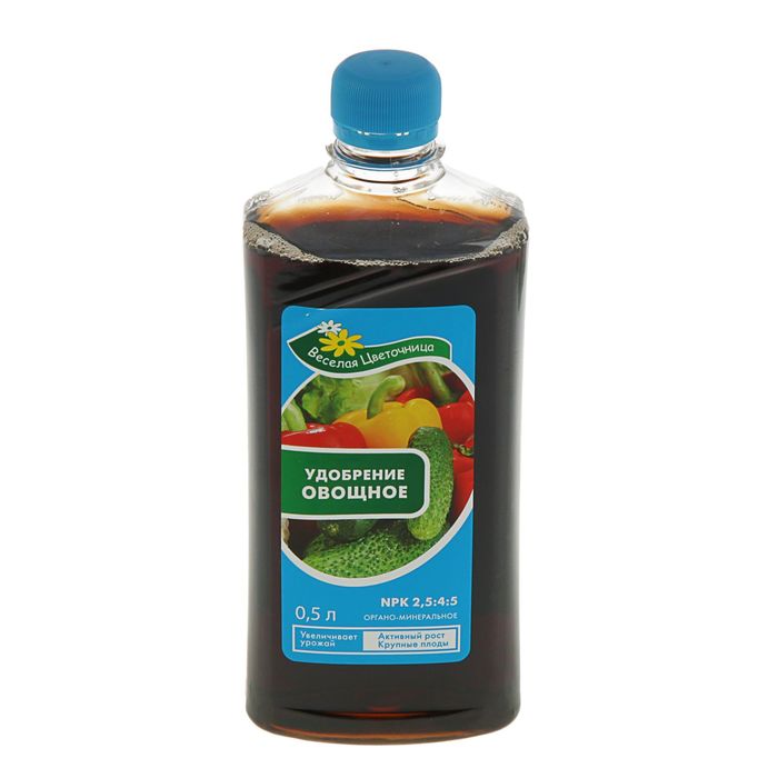 Жидкие удобрения легко достигают корня растения и действуют гораздо быстрее твёрдых подкормок. Они могут работать на маленьких площадях, поэтому вы без труда восполните дефицит нужного элемента у одного участка земли, не трогая другой. Удобрение открытого грунта Веселая Цветочница "Овощное", флакон, 500 мл поможет вам эффективно выращивать огородные культуры. Средство хорошо растворяется и впитывается в почву, попадая к сеянцам максимально быстро. Оно не истощает земли и не влияет на соседние саженцы. В правильных дозировках состав даёт положительный эффект. Как вносить жидкие удобрения: советы садоводу Подкармливайте растение, если оно заметно «худеет». На богатой почве дополнительные питательные вещества не нужны. Скороспелые овощи удобряйте один раз. Среднепоздние — 2–3. Самые «быстрые» (редис, укроп и другие) не подкармливайте, чтобы не получить дозу подкормки в салате. Обрабатывайте почву после дождя или полива. Чтобы не обжечь листья, смывайте водой попавшее на них средство. Чередуйте органические и минеральные удобрения. Не подкармливайте растения за 20–25 дней до урожая. Похожие товары