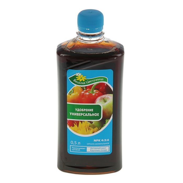 Удобрение открытого грунта Веселая Цветочница "Универсальное", флакон, 500 мл поможет вам эффективно выращивать огородные культуры. Средство хорошо растворяется и впитывается в почву, попадая к сеянцам максимально быстро. Оно не истощает земли и не влияет на соседние саженцы. В правильных дозировках состав даёт положительный эффект. Как вносить жидкие удобрения: советы садоводу Подкармливайте растение, если оно заметно «худеет». На богатой почве дополнительные питательные вещества не нужны. Скороспелые овощи удобряйте один раз. Среднепоздние — 2–3. Самые «быстрые» (редис, укроп и другие) не подкармливайте, чтобы не получить дозу подкормки в салате. Обрабатывайте почву после дождя или полива. Чтобы не обжечь листья, смывайте водой попавшее на них средство. Чередуйте органические и минеральные удобрения. Не подкармливайте растения за 20–25 дней до урожая. Похожие товары
