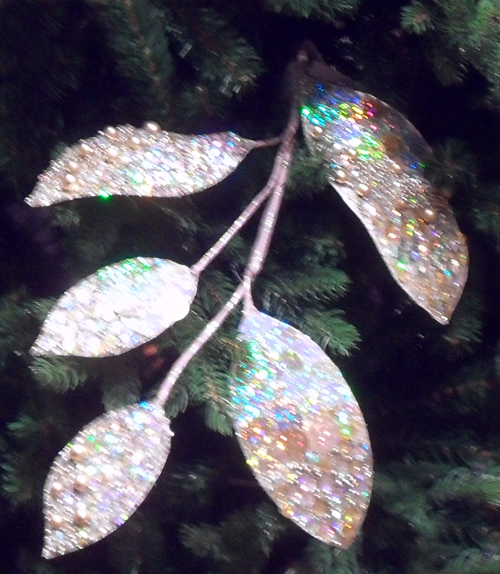 Ветка атласная с блестками, мелкие листья, платина TLN1472
