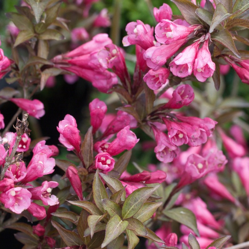 Вейгела относится к раскидистым кустарникам с медленной интенсивностью роста. Размер растения компактный и низкорослый, высота варьируется от 70 до 100 см. Диаметр куста от 100 до 120 см, крона имеет форму шара. Побеги растут прямо, сбоку изогнуты. Листва коричневая, кожистой структуры, долго держится на растении, не опадая. Декоративный кустарник отлично подходит для разных участков. Корневая система плосковата, развита отлично, распространена вверху грунта очень широко. Неплохо приспосабливаются к разным типам почвы, в том числе и плотным. Крона густая, хорошо смотрится в живых изгородях. Кора имеет коричнево-серый тон у зрелого растения. Главный внешний плюс – изящность и красота гладкой и матовой листвы с зазубренным краешком. Окрас листьев на протяжении сезона меняется от зелено-бурого до коричневого. Похожие товары