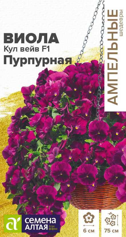Холодостойкий раннецветущий гибрид ампельной виолы. Быстро наращивает побеги, зацветает в год посева, цветение длится до глубоких заморозков. Цветки глубокой пурпурной окраски. Выращивается в подвесных кашпо, балконных ящиках, а также в качестве почвопокровного растения. Длина плети: 60-75 см. Диаметр цветка: 4-6 см. Условия выращивания, место посадки: хорошо освещенные места Требования к грунту: питательный легкий грунт (рекомендуется добавить вермикулит), слабокислый Способы выращивания: рассадный Время посева на рассаду: февраль-март Способ посева: семена высевают на уплотненное ложе замоченных торфяных таблеток или увлажненного грунта, заделывая на глубину 0,2-0,3 см. Емкость накрывают прозрачной крышкой или пленкой до появления первых всходов, периодически проветривают. Оптимальная температура для прорастания +21…24°С. После появления первых всходов рекомендуется организовать досветку 10-12 часов в сутки. Оптимальная температура для молодых растений +18…22°С. Время до появления всходов: 2-5 дней Перевалка: производится в стадии 2-4 настоящих листьев в рассадные емкости диаметром около 9 см, 4-5 неделя после посева. Последующие перевалки осуществляются по мере роста корневой системы, больший объем грунта способствует росту боковых побегов и более активному цветению. Для подвесного кашпо используются емкости не менее 25-30 см в диаметре. Время высадки в открытый грунт: май, не ранее 6-7 недели от посева Посадочное расстояние: 25-30 см Период цветения: апрель-ноябрь, с 8 недели от полных всходов Уход: необходим регулярный полив. Первую подкормку проводят в начале бутонизации сульфатом калия. Похожие товары
