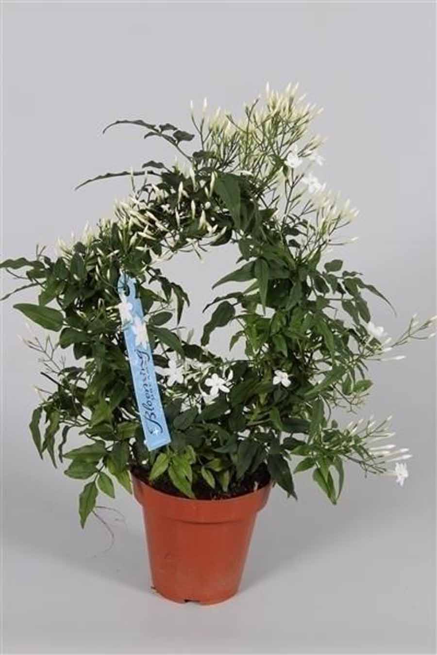 Жасмин многоцветковый - один из самых распространённых видов у цветоводов, получивший «народное» название - «комнатный жасмин». Его родина – области Китая и Бирмы. Это лазящая ветвистая лиана с гибкими тонкими стеблями, длиной до 6 м. Листья супротивные, непарноперистые, с 5 - 7 листочками-долями. Верхняя поверхность листовой пластины тёмно-зелёная, нижняя – более светлая. Цветение очень обильное, начинается в конце зимы – начале весны. Отдельные соцветия-метёлки могут насчитывать до 50 белых цветков и розовато-бордовых бутонов, раскрывающихся поочерёдно. Цветки простые, пятилепестковые, диаметром 2 см, очень ароматные. К влажности воздуха жасмин не критичен, хотя в жаркие и сухие дни его рекомендуется регулярно опрыскивать. Жасмин, как никто другой, нуждается в глубокой обрезке. Это растение обладает мощным ростом и за один сезон способно вымахать на пару метров. Поэтому после цветения и перед началом вегетации его побеги обрезают очень коротко, на 2/3 их длины. Это не только сдерживает рост, но и способствует более пышному цветению, так как соцветия формируются только на концах молодых побегов. Во время вегетации растение подкармливают раз в 1 - 2 недели удобрениями для цветущих растений, используя концентрацию, указанную на упаковке. Молодые экземпляры пересаживают ежегодно, весной, в горшки большего диаметра. Взрослые – раз в 2 - 3 года. Освещение: все жасмины любят яркий свет, но плохо переносят прямые солнечные лучи. Замечено, что под палящим солнцем бутоны не раскрываются, а засыхают и опадают, а уже распустившиеся теряют свой аромат. Но стоит растение перенести в полутень, как эта проблема исчезает. Температура: 18-25 ° C, зимой 8-10 градусов. Полив: обильный, по мере подсыхания верхнего слоя почвы, и только мягкой, хорошо отстоянной водой комнатной температуры. Похожие товары
