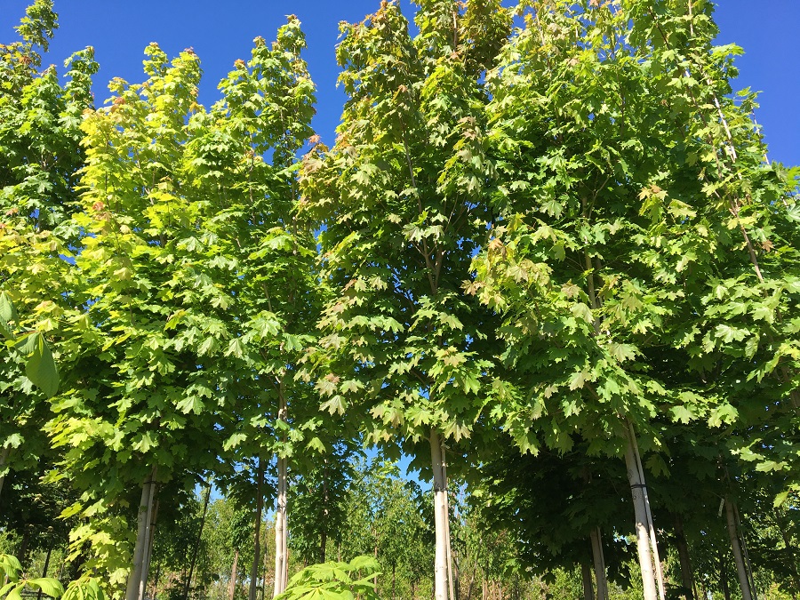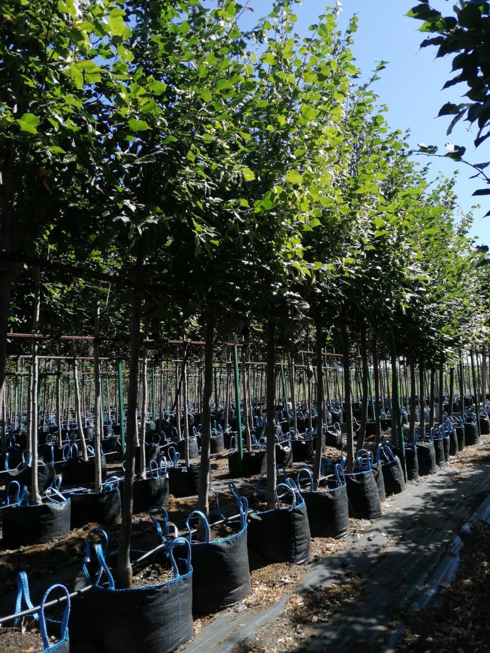 В питомнике представлен широкий выбор сформированных аллейных деревьев для городского озеленения (клён, липа, декоративные яблони, черёмуха, береза, рябина, тополь, ясень), от маленьких саженцев до крупных деревьев.