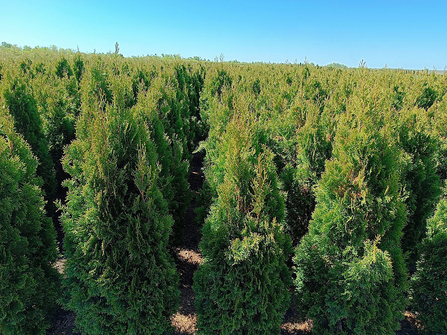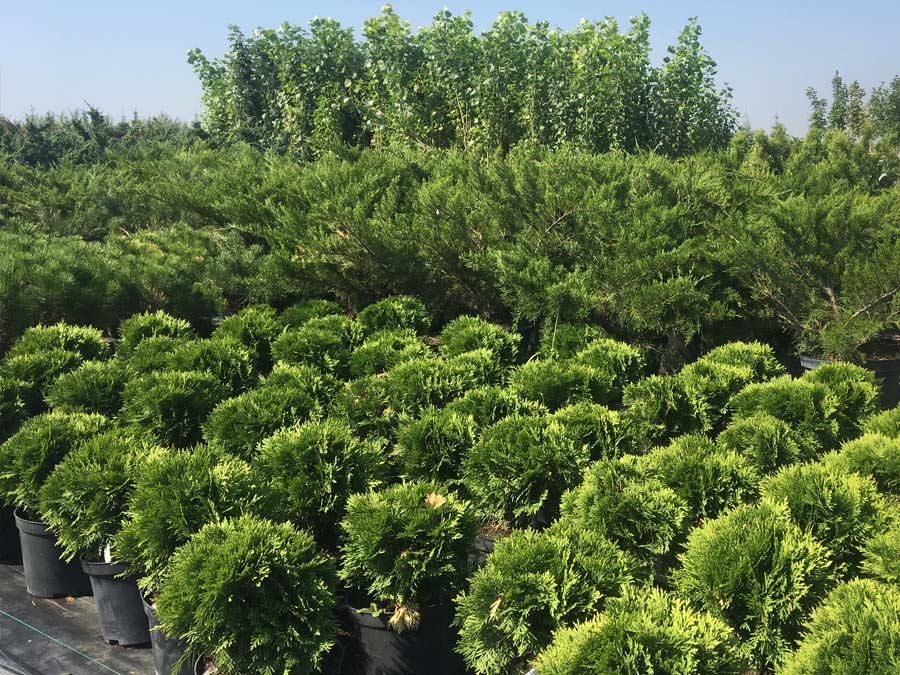 Наша специализация в производстве - это хвойные растения (туи, можжевельники и ели), лиственные деревья и декоративные кустарники, плодовые культуры.