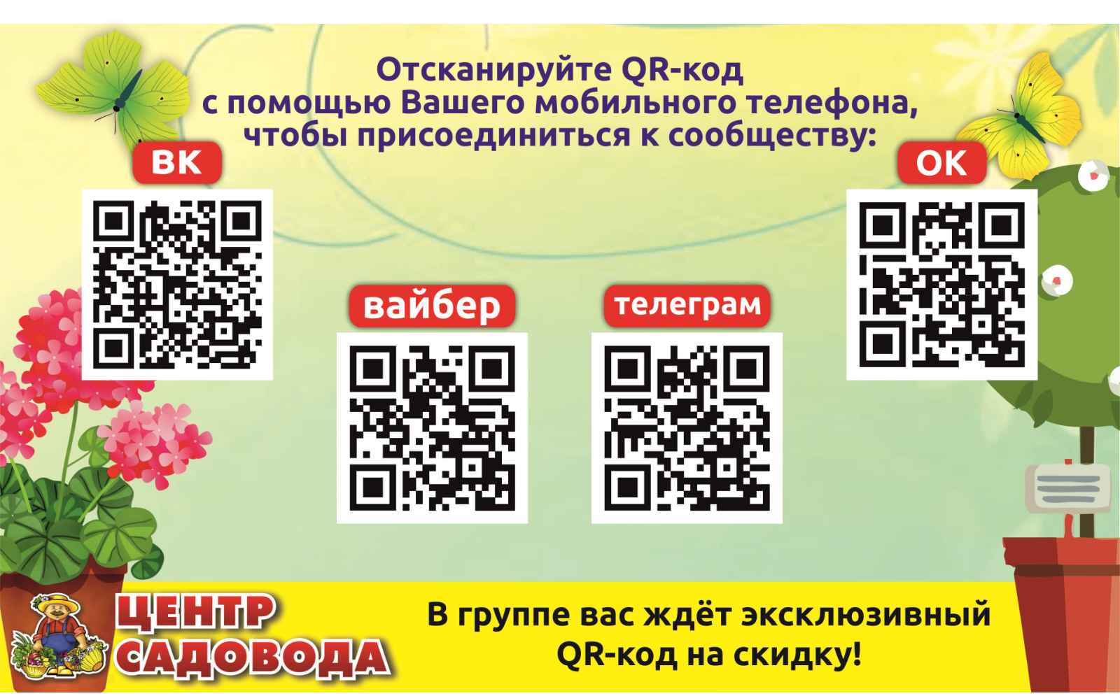 А чтобы воспользоваться скидкой в наших магазинах Вам необходимо быть подписанными на наши социальные сети и показать на кассе персональный QR-код.