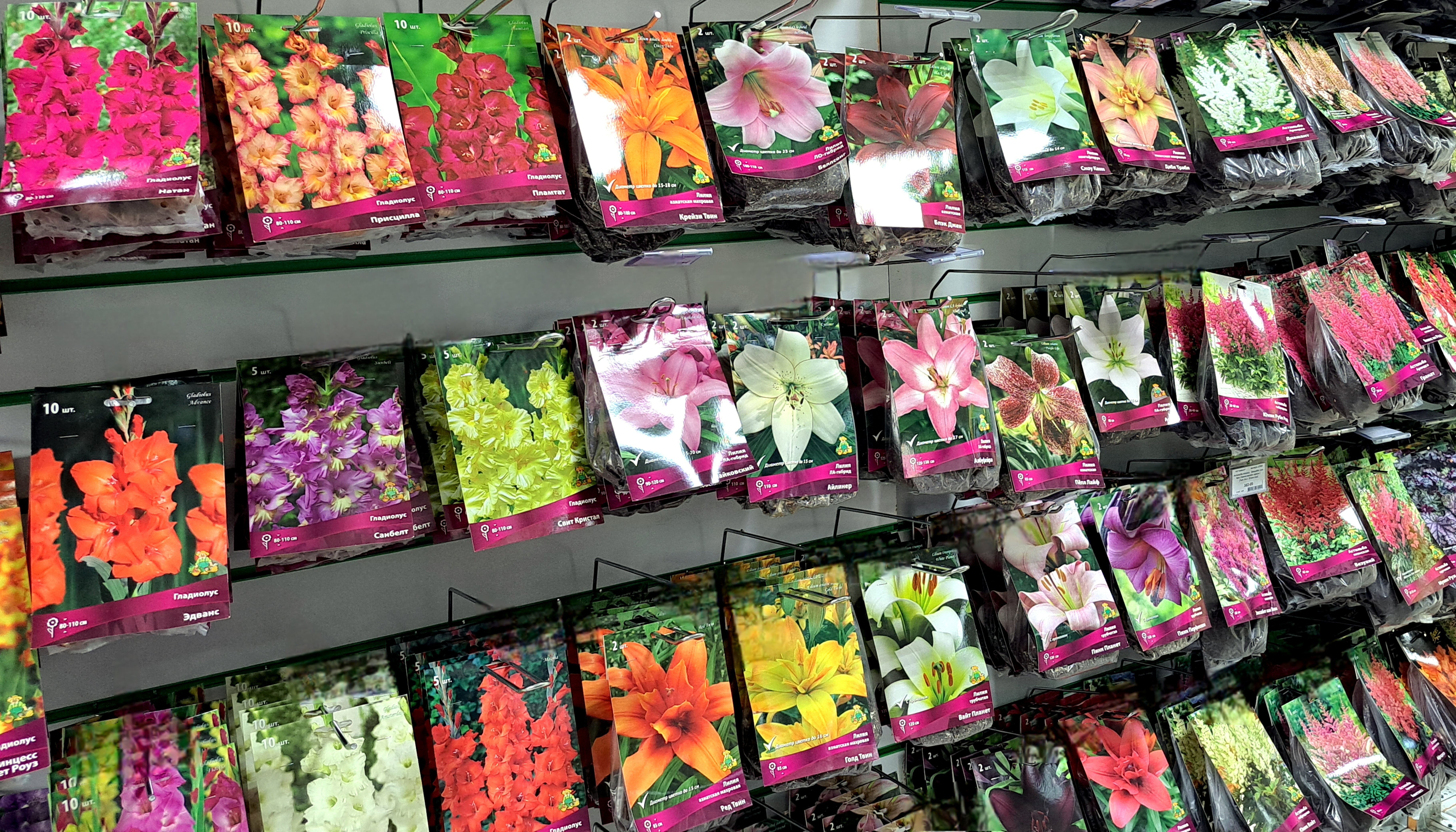 Среди луковичных вы найдёте:Аквилегии, астры, астильбы, георгины, гладиолусы, дельфиниумы, ирисы, каллы, колокольчики, лилейники, лилии, люпины, седумы, флоксы, хосты и другие культуры