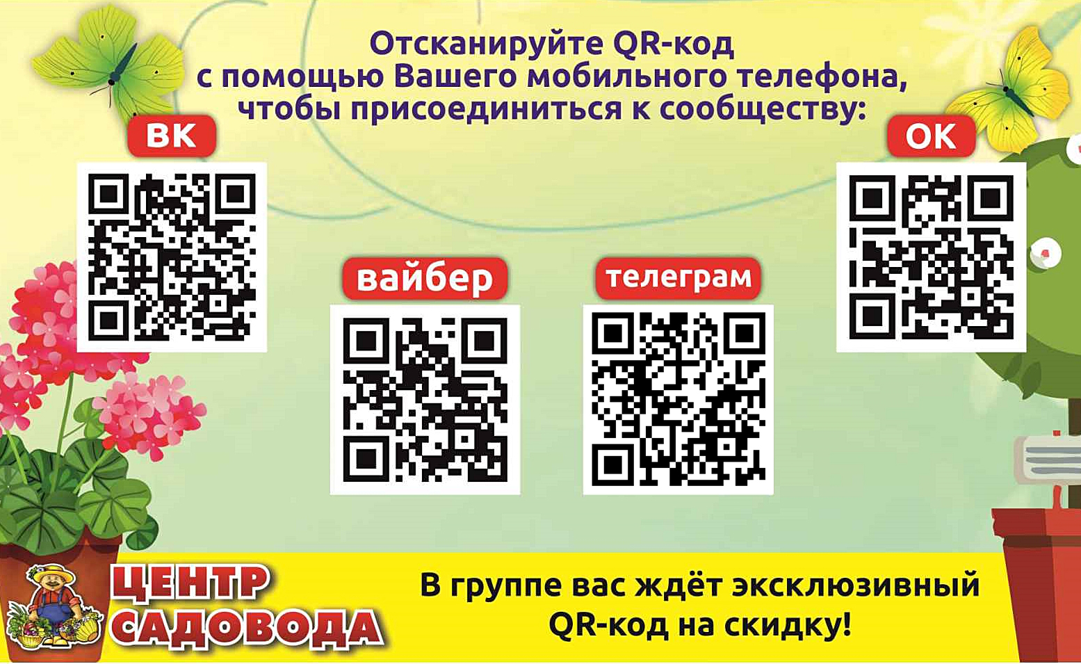 А чтобы воспользоваться скидкой в наших Садовых Центрах Вам необходимо быть подписанными на наши социальные сети и показать на кассе персональный QR-код.