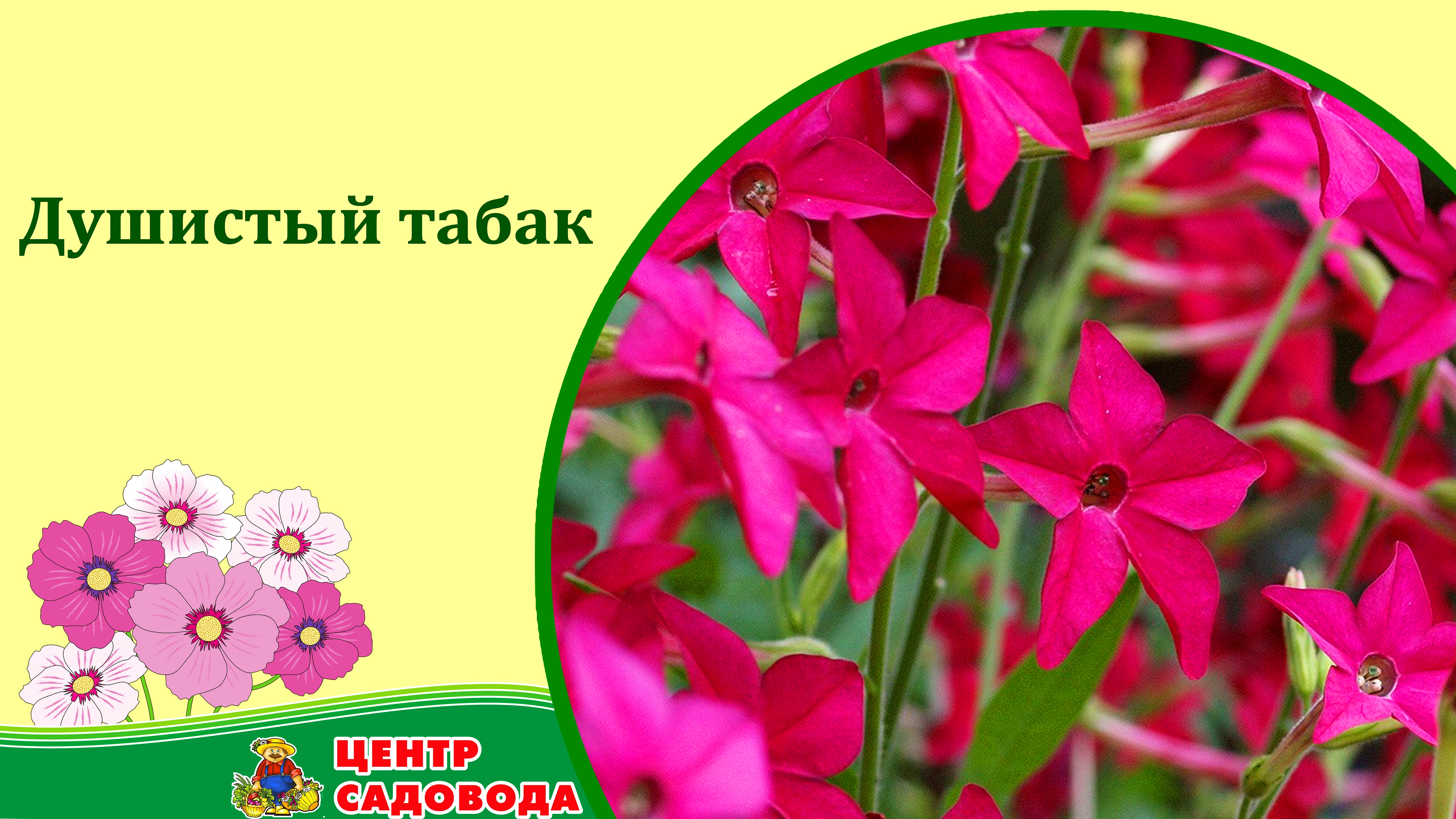 Душистый табак — растение с цветами разнообразной окраски и с сильным запахом действует как природный инсектицид. Рассаду выращивают с пикировкой, в конце мая сеянцы пересаживают на участок с рыхлой и плодородной почвой. Культура теневынослива, хорошо отзывается на подкормки.