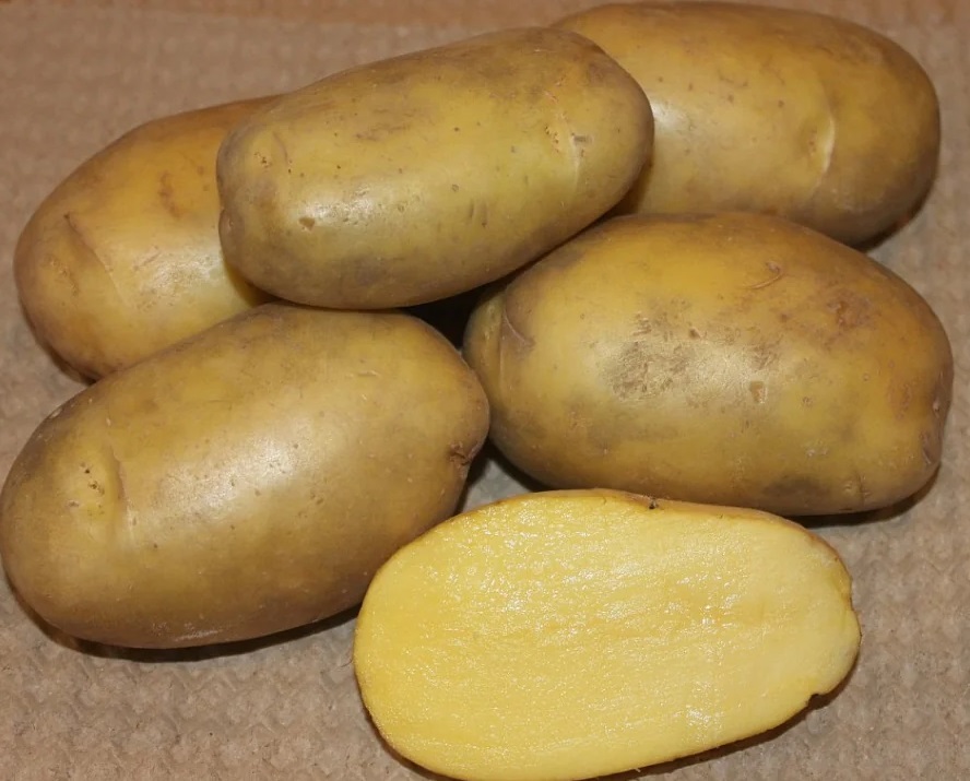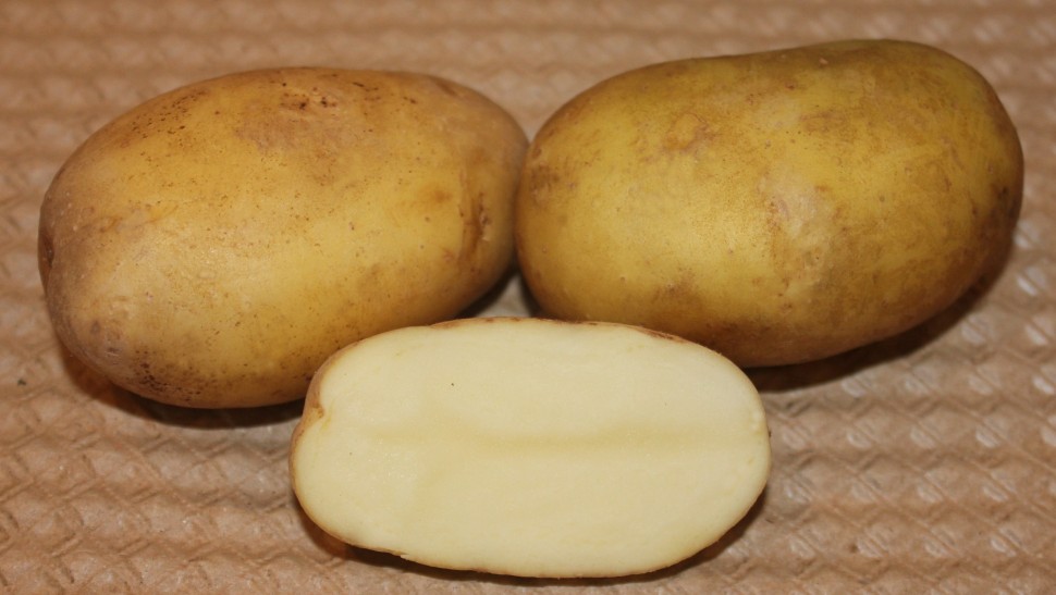 Сорт среднеранний, урожай можно собирать через 90-100 дней. Вкусные клубни не темнеют ни в сыром, ни в вареном виде. Их масса до 150г, кожура - светло-бежевая с поверхностными глазками. На 1 куст обычно приходится 11-13 клубней. Сорт хранится долго, хорошо транспортируется, устойчив к большинству заболеваний. Мякоть белая. Лежкость 98%. Восприимчив к фитофторозу по ботве, умеренно восприимчив по клубням. Ценность сорта: высокая урожайность, товарность, лежкость клубней, устойчивость их к механическим повреждениям.