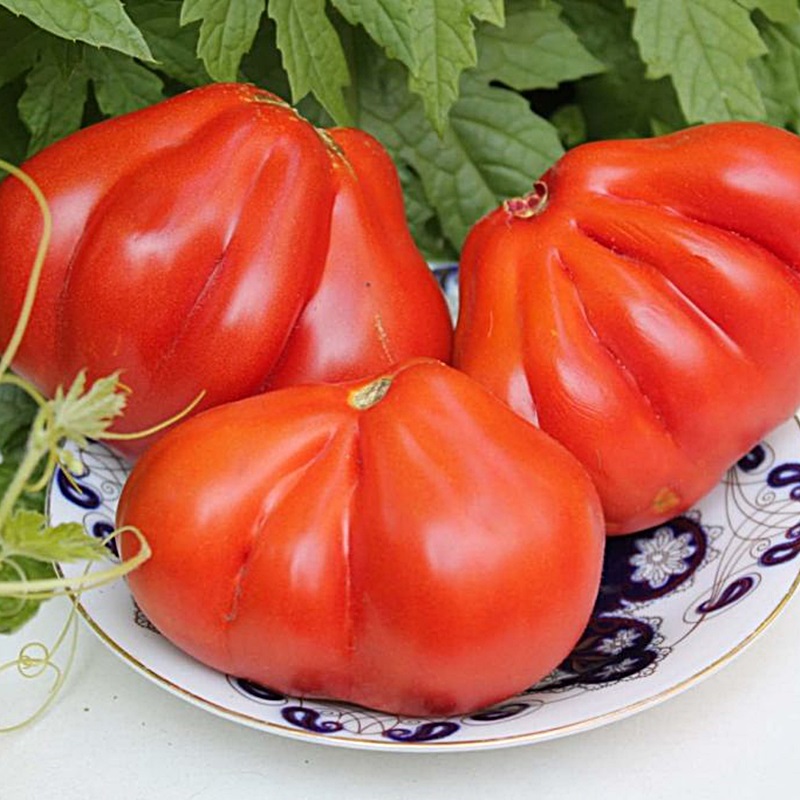 Внешний вид этих томатов вполне объясняет их название. Крупные (300 г), грушевидные, ребристые. Данные помидоры созревают рано – через 105-110 дней после посадки рассады. Однако, краснеют они постепенно, если много тепла и солнца. Выращивают их в открытом грунте, а также под пленкой, где они зреют быстрей. Плоды мясистые, по вкусу очень сладкие и сочные.