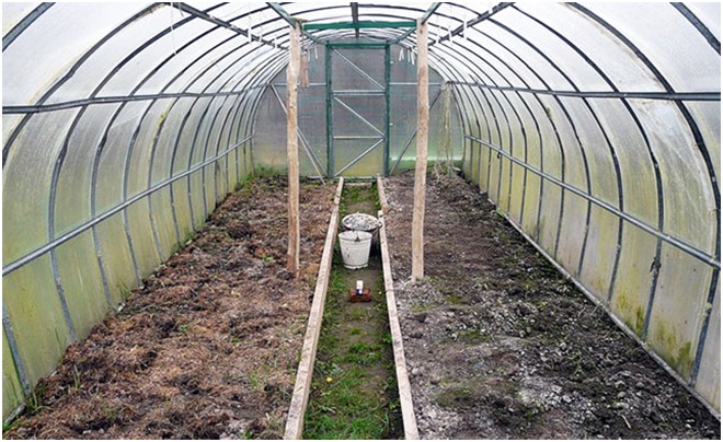 В середине первого весеннего месяца можно заняться подготовкой почвы в теплице. Для начала необходимо восстановить разобранную на зиму крышу теплицы, чтобы внутренне пространство быстрее прогрелось, а поздние весенние снегопады не засыпали землю. После этого почву сушат в течении 7-10 дней. Когда в теплице станет сухо, то можно начинать ее перекопку. Перед началом этого процесса почву надо обеззаразить. Для этого отлично подойдет раствор марганцовки, светло розового оттенка. В среднем берется литр этого раствора на 1 м.кв. Также можно обработать почву серой, для профилактики паутинного клеща. Для этого берется около 150г химиката на 1 м.кв. Работы с серой необходимо производить в противогазе.