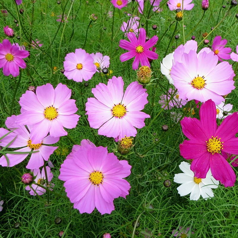 Вся прелесть в низкорослых космеях. Цветок разной покраски. Своей красивой ажурной листвой отлично сочетается с другими цветами. Космея очень неприхотливое растение. Главное не совершать ошибок: не заливать, не закармливать. Сажать стоит в солнечное место.