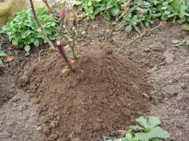 - Окучивать кусты роз в сырую погоду и влажным грунтом