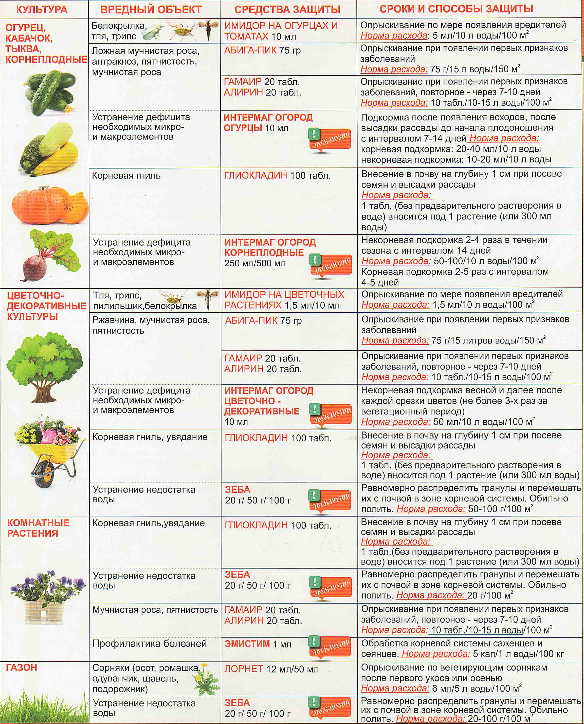 - для овощных культур