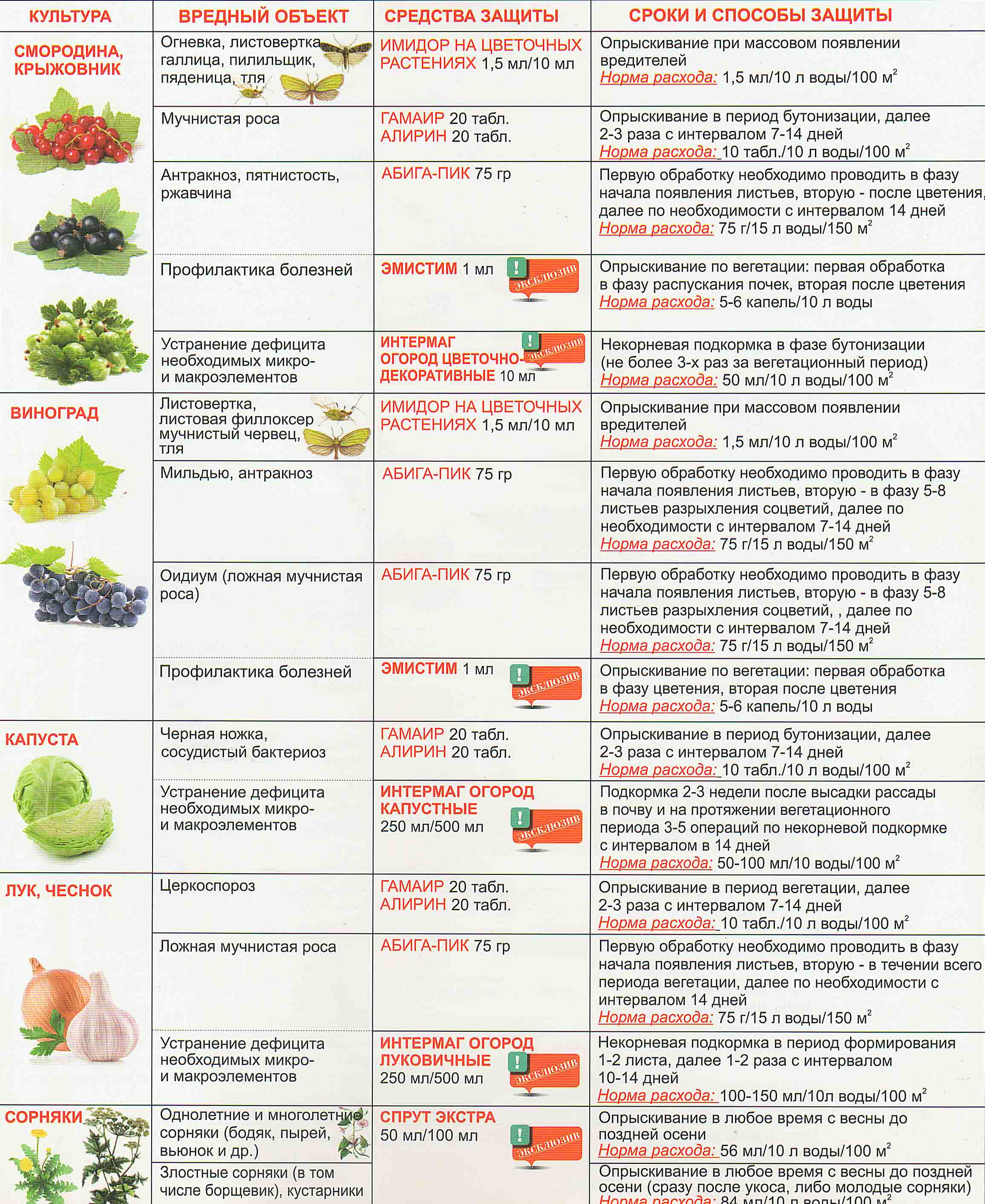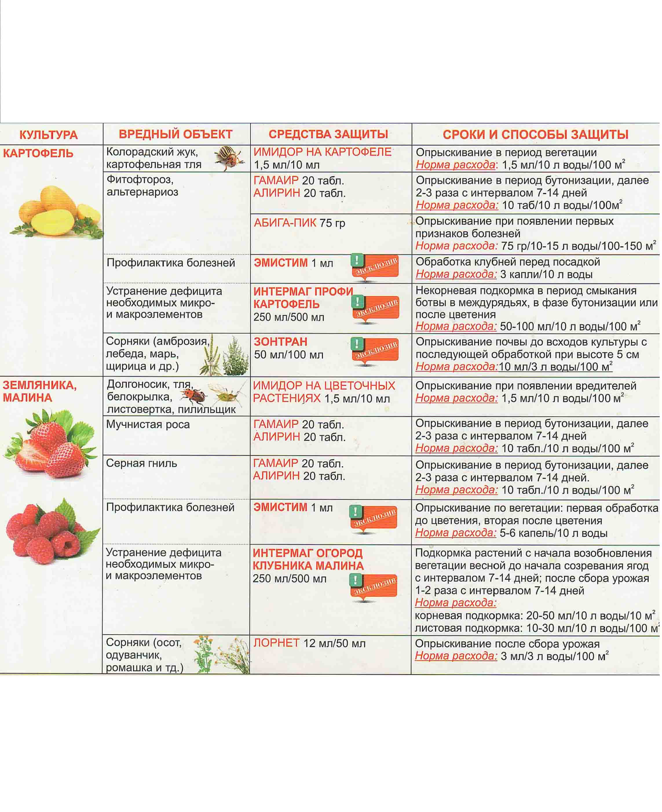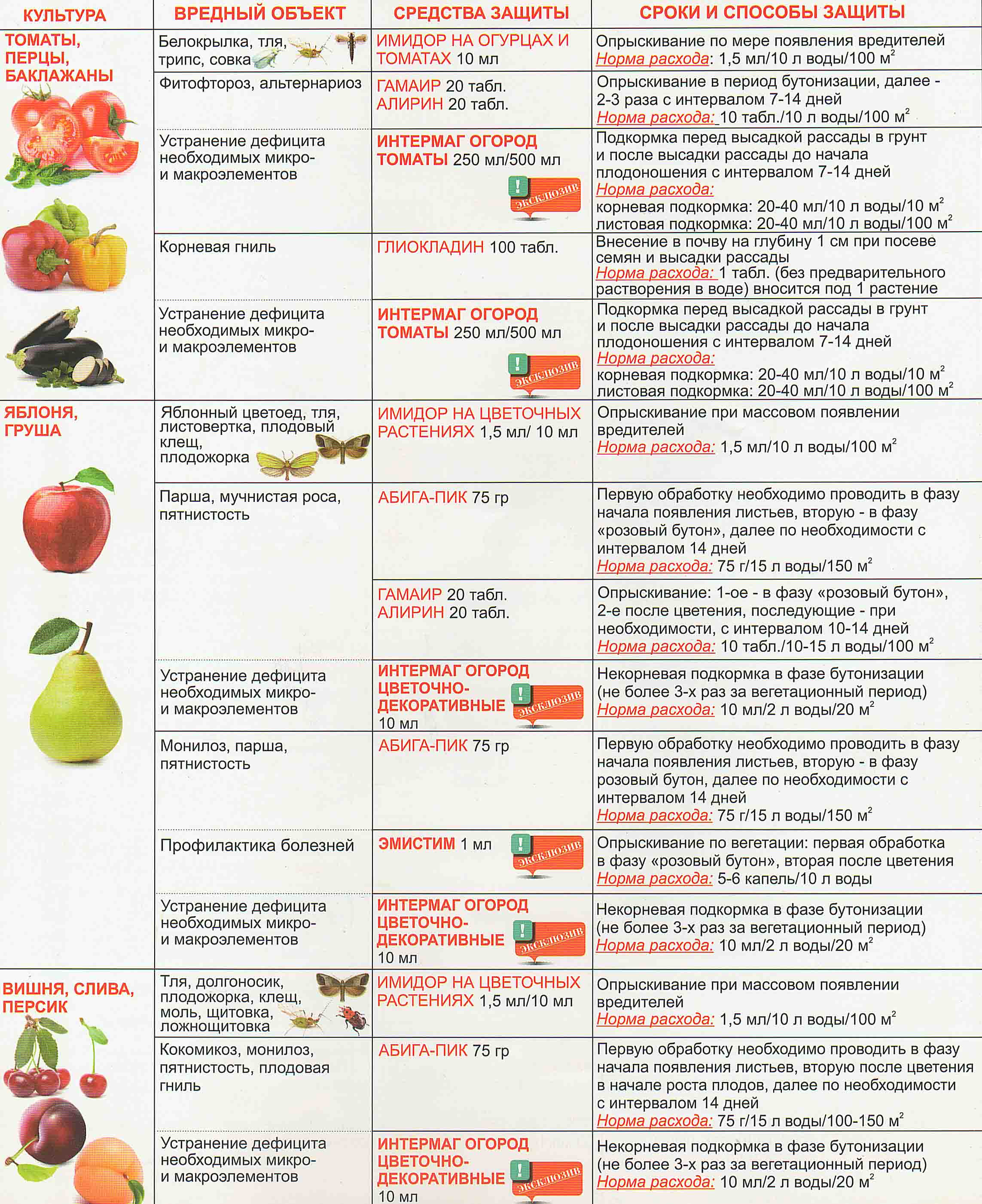 - для плодовых и ягодных культур