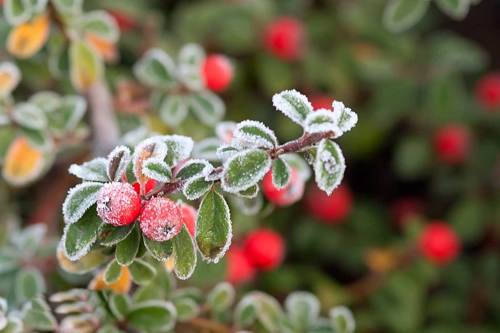 Обратите внимание на растения, чьи плоды остаются декоративными даже в зимнее время. Это падуб, барбарис, кизильник, снежноягодник и некоторые декоративные яблони.