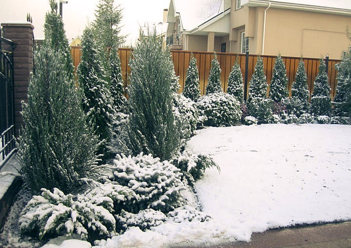 Позаботьтесь о посадке хвойных деревьев и кустарников. Они обладают многообразием форм, окрасок и размеров, здесь всегда есть, из чего выбирать.