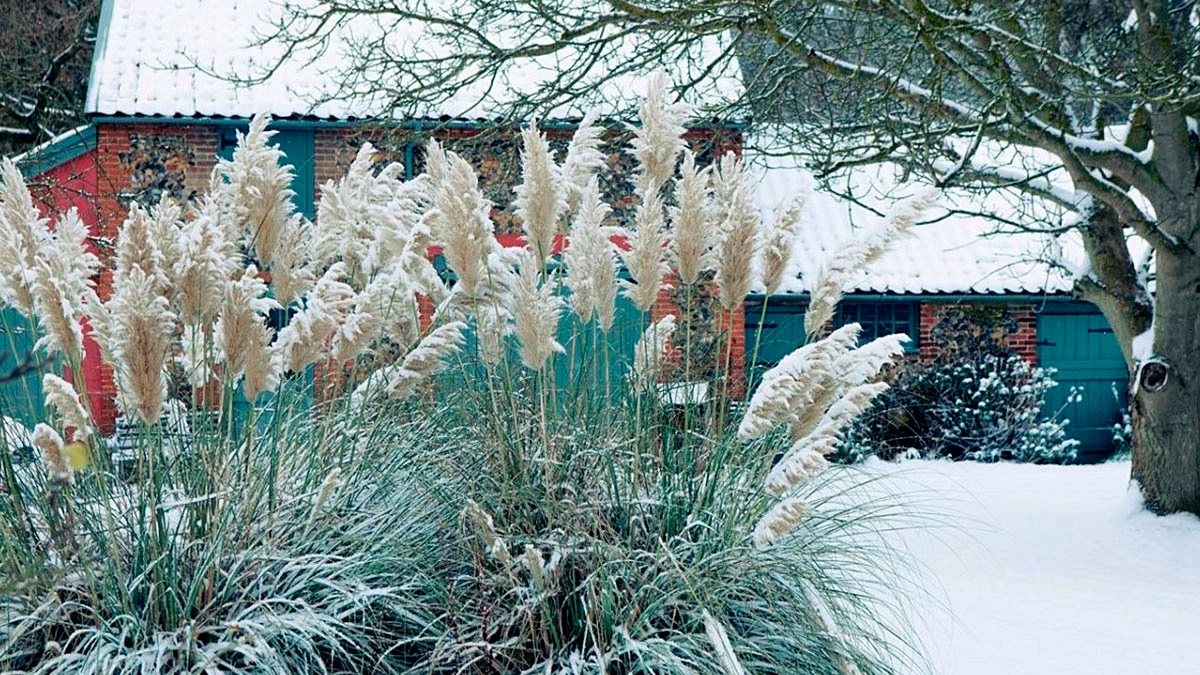Украсьте сад высокими декоративными видами травянистых растений. Их листья, напоминающие перья диковинных птиц, зимой будут выглядеть очень эффектно.