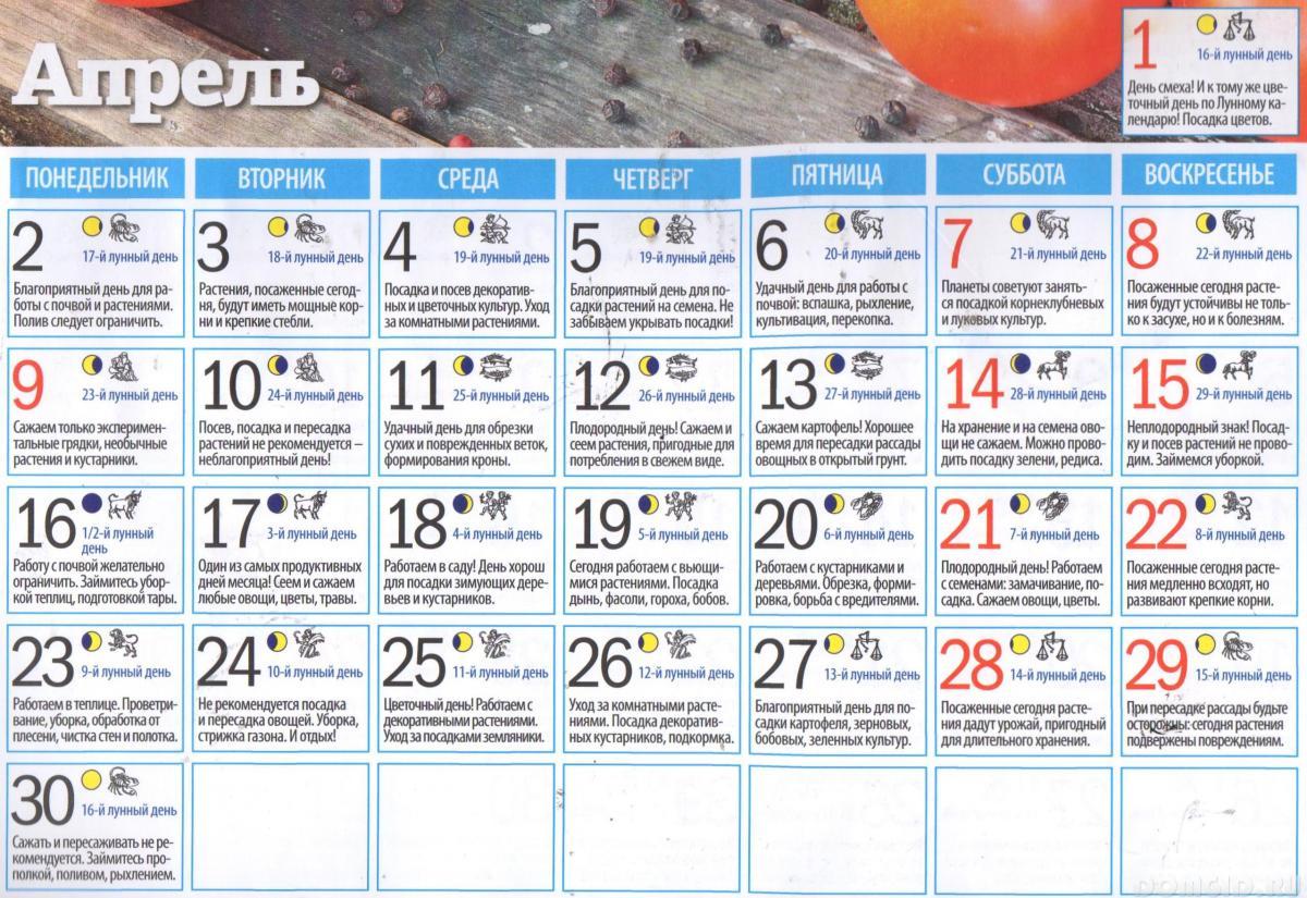 Удачный лунно-посевной календарь! АПРЕЛЬ
