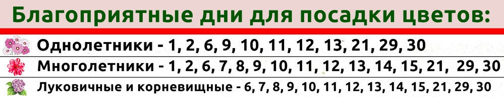 Цветоводам - хорошие дни для посадки однолетников, многолетников, луковичных и корневищных культур.