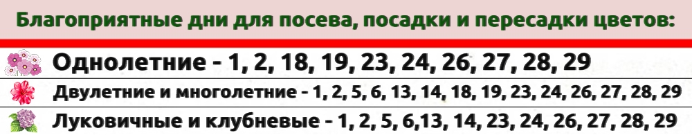 Цветоводам хорошие дни для посадки, пересадки, полива, рыхления и подкормки комнатных растений. Необходимо сеять однолетние и многолетние растения.