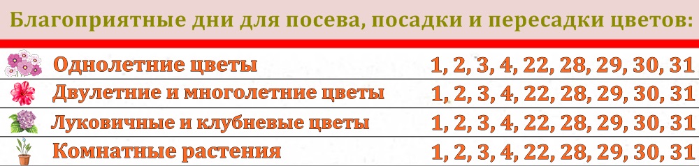Благоприятные дни посева семян, благоприятные дни посева и посадки цветов, а также благоприятные дня садовых работ приведены ниже в таблицах⤵️