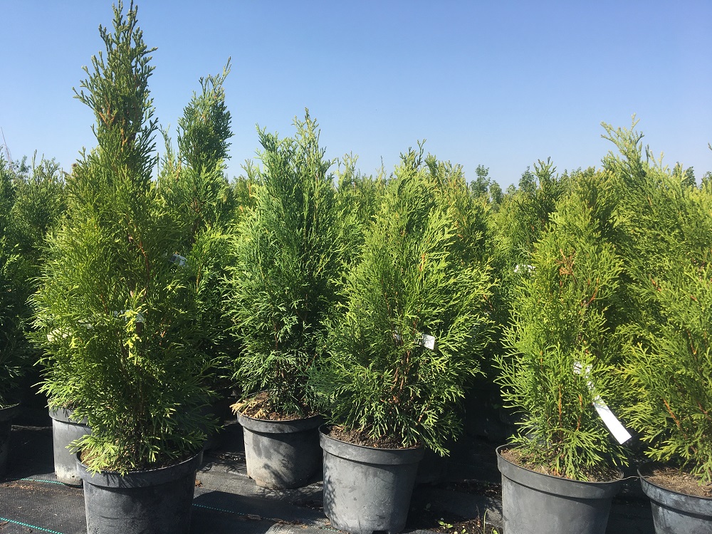 В Садовых Центрах представлены туи западные различных сортов, форм и окрасок: