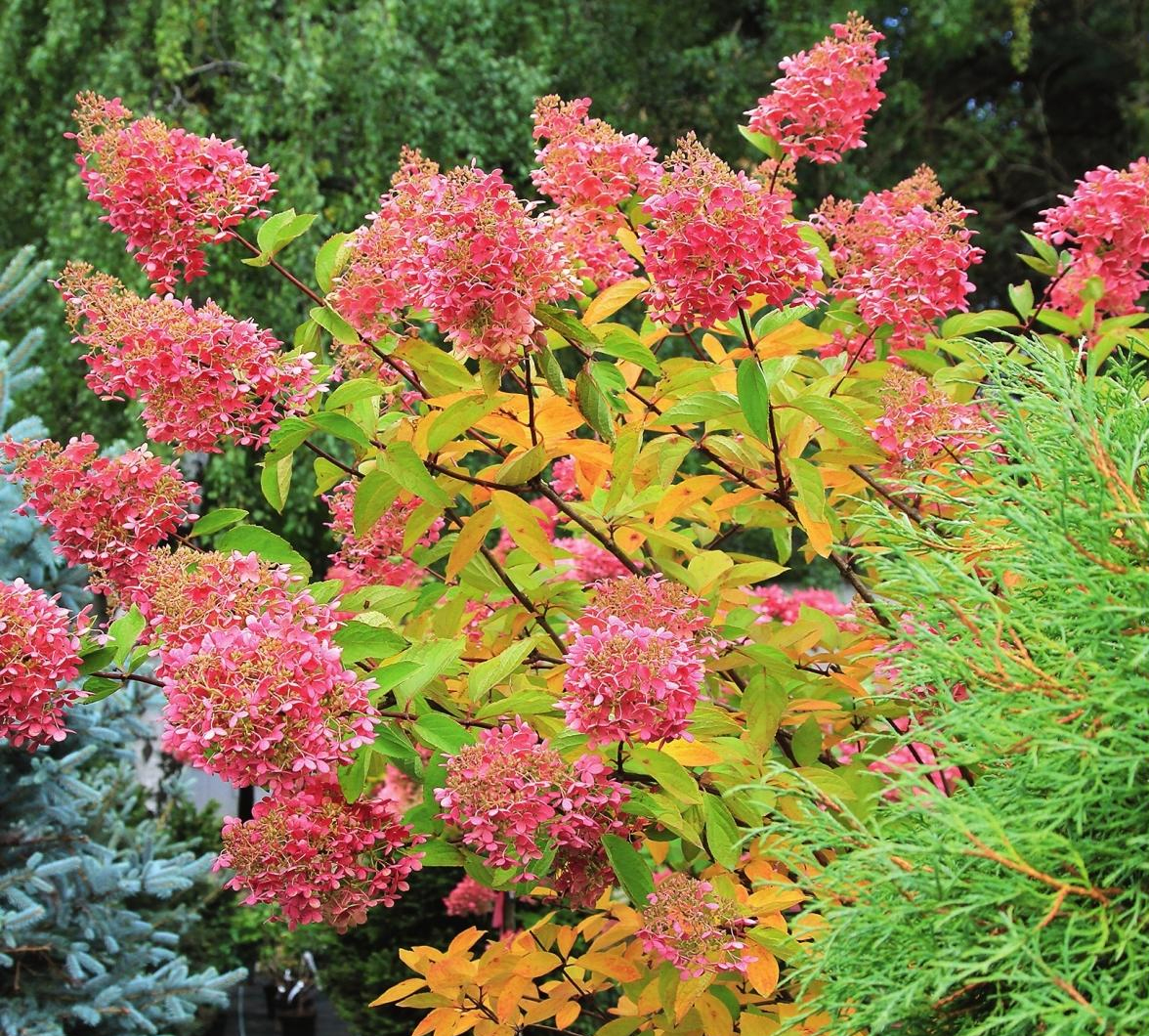 Необычайно эффектное зрелище гортензии представляют осенью, когда на одном растении можно одновременно увидеть бутоны, семенные головки и листья разных цветов.